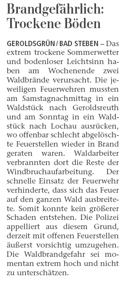Feuerwehr Geroldsgrün und Steinbach zu einem Flächenbrand nach Geroldsreuth