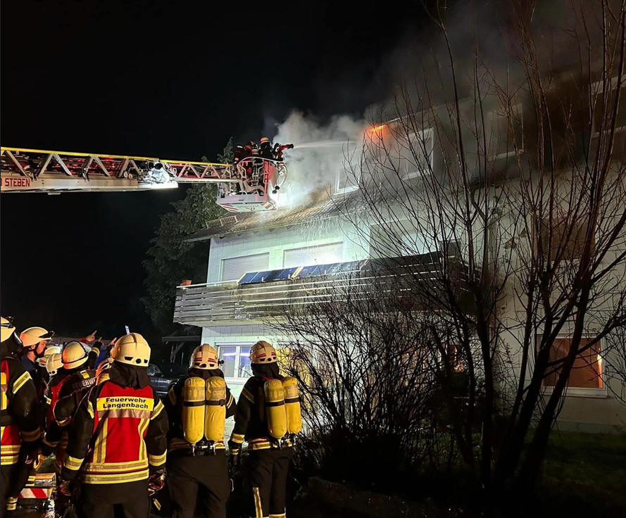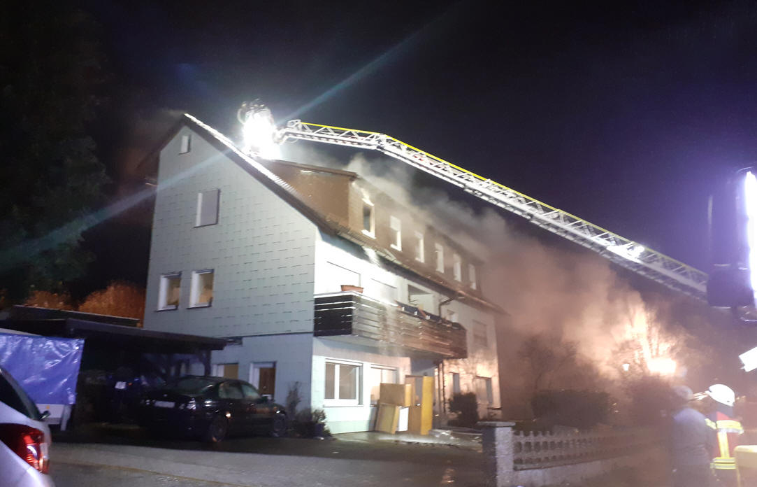 eintraf stand bereits der gesamte Dachstuhl in Vollbrand. Zwei