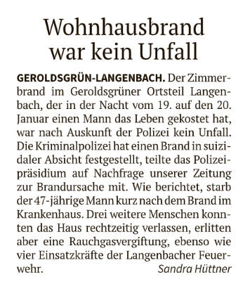 folgenschweren Hausbrand. Ein 47-jähriger Bewohner starb danach im