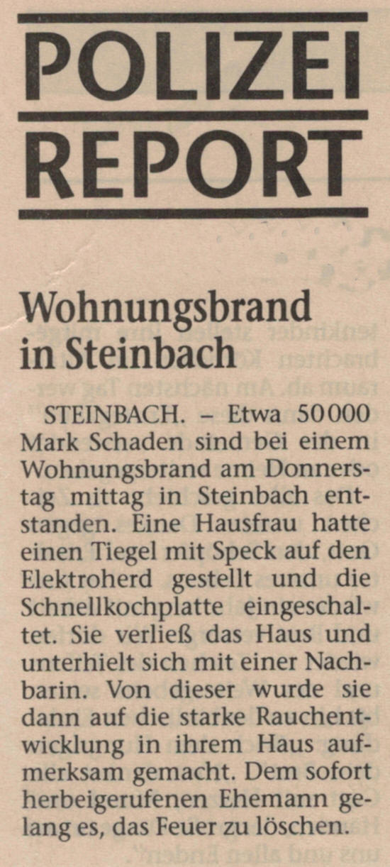 Steinbach - Brand Küche (Quelle: Tagespresse FP)