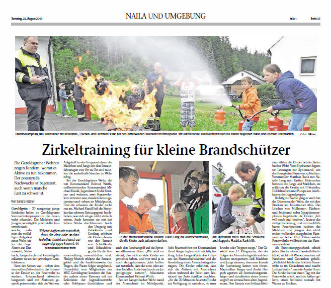 Ein Tag bei der Feuerwehr Frankenpostbericht vom 22.08.2015