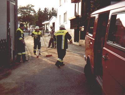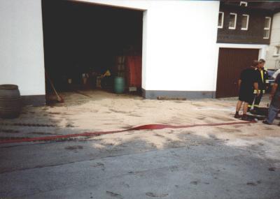 Ölunfall in einem HandwerksbetriebAlarmzeit: 01.08.2002 17:44 UhrEs sind ca 500 Liter ausgelaufener Dieselkraftstoff zu binden und anschließend der Abwasserkanale zu spülen.
