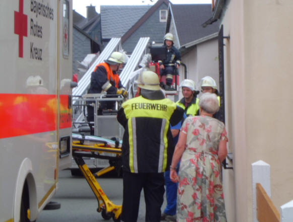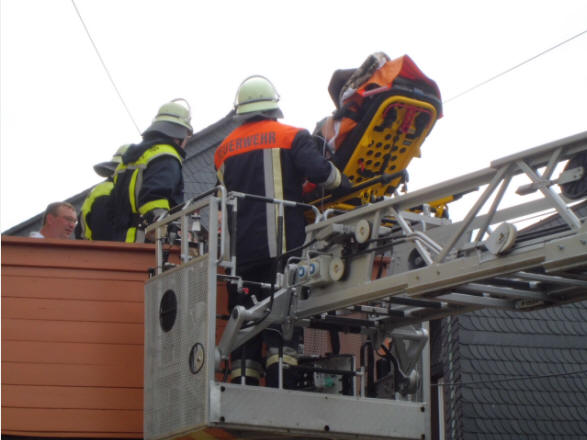 Erkrankte Person über Balkon mit DLK gerettet.