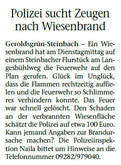Bei eintreffen der Feuerwehr Steinbach brannte eine Fläche von ca 50 - 60