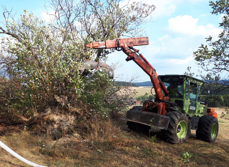 größeren Busch. Zur Sicherheit wurde der morsche Busch mit Forstgerät