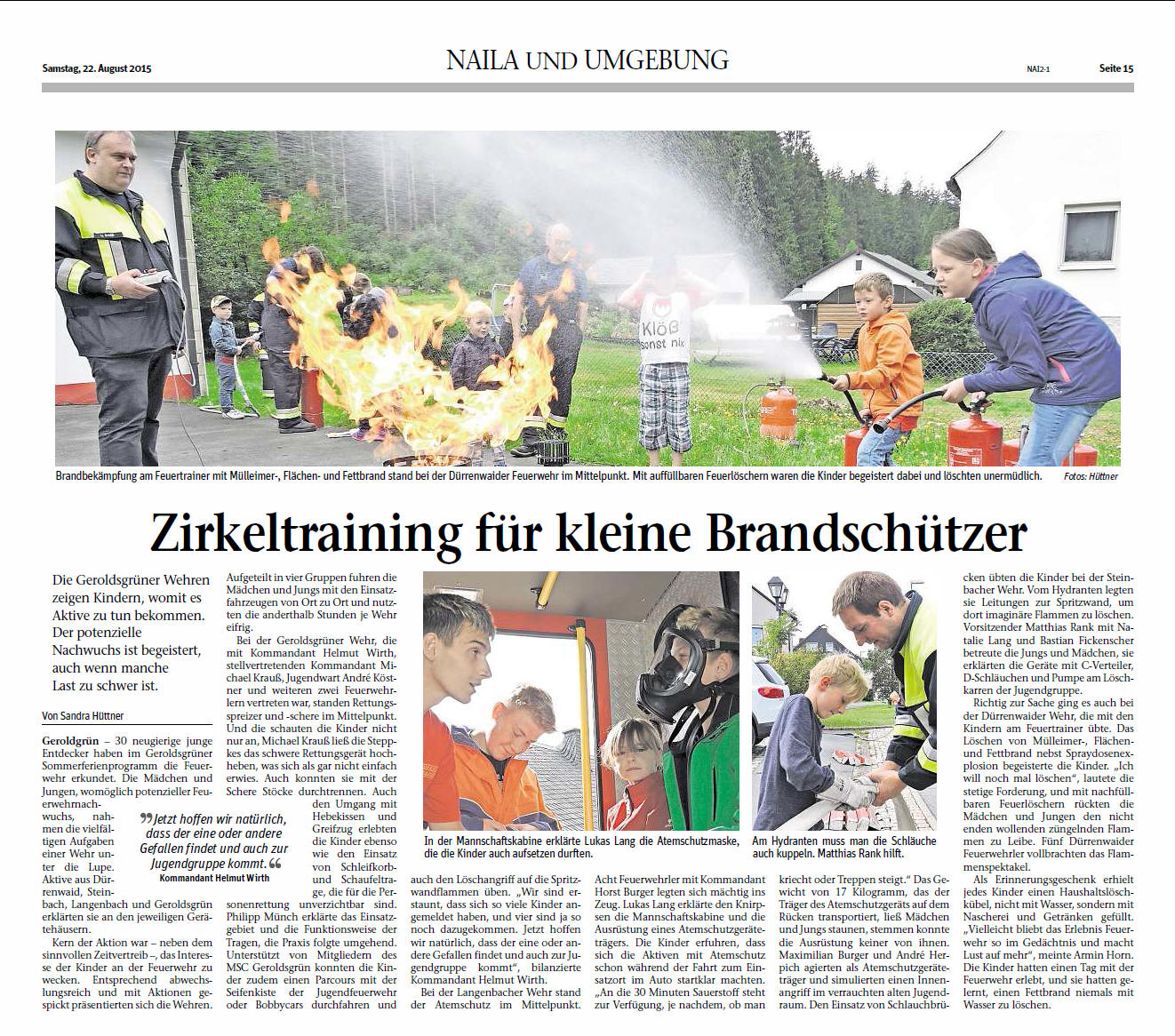 Ein Tag bei der Feuerwehr Frankenpostbericht vom 22.08.2015