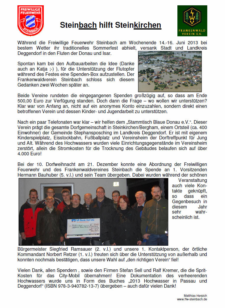 durchführen zu können. Rank bedankte sich bei allen Steinbacher, den